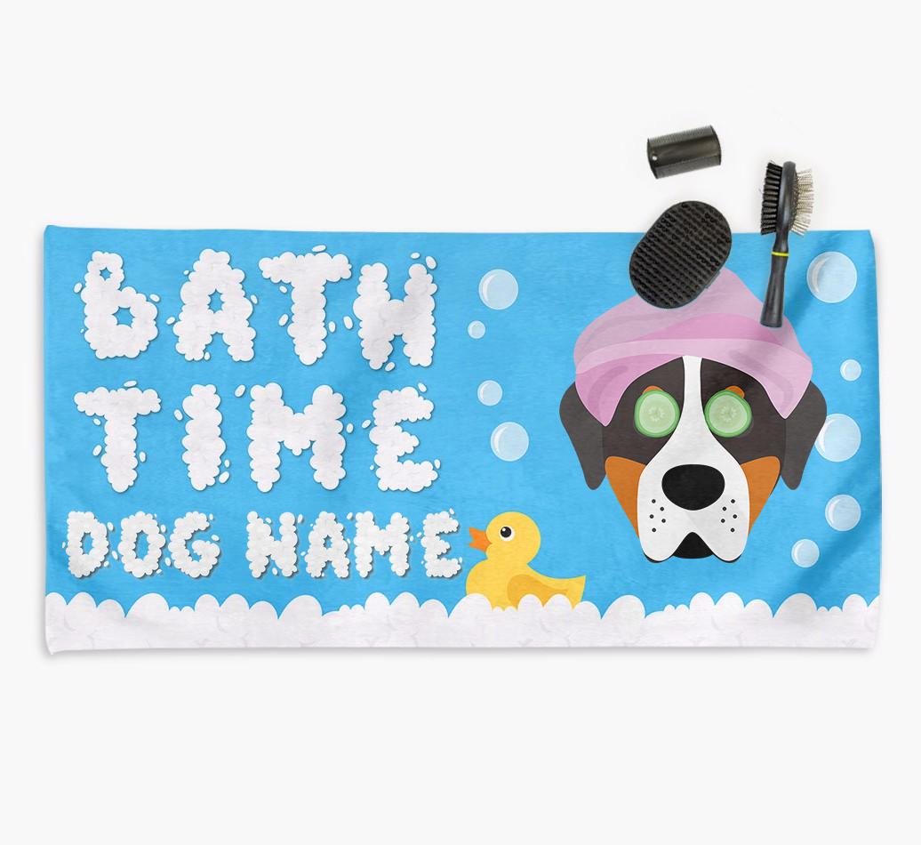 Bubble Bath Time: Personalized Greater Swiss Mountain Dog Towel