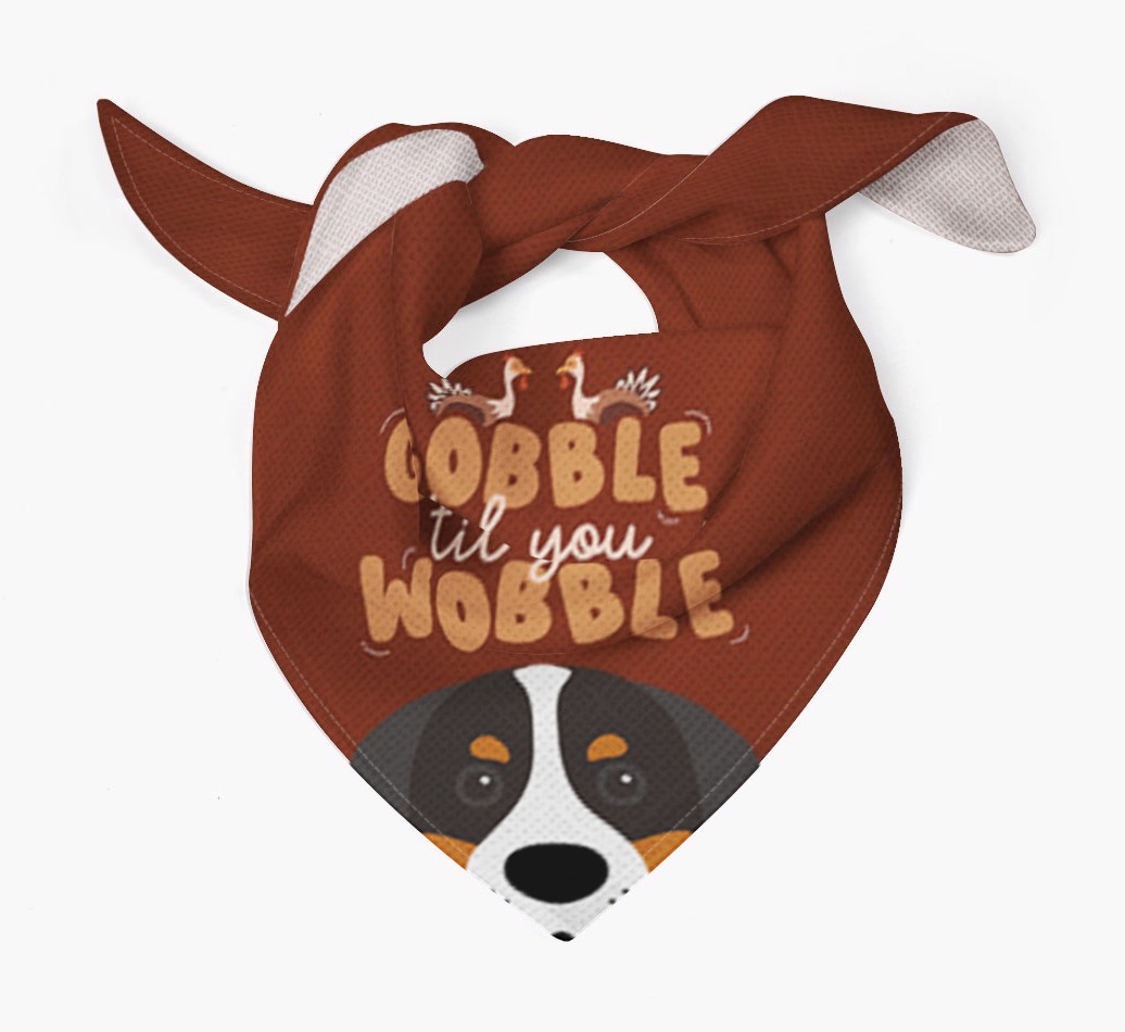 This cute custom bandana is printed with the phrase of the season, "gobble til you wobble"!