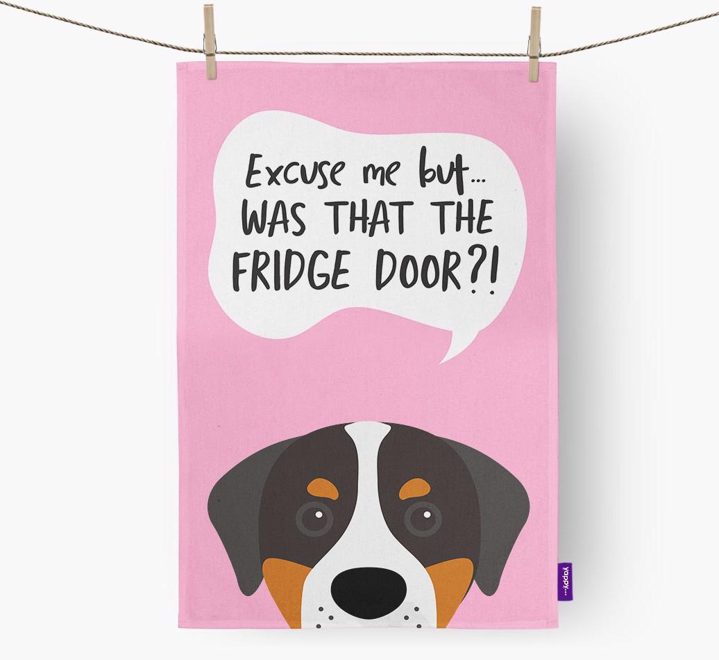 'Was That The Fridge Door?!' - Personalized Greater Swiss Mountain Dog Dish Towel