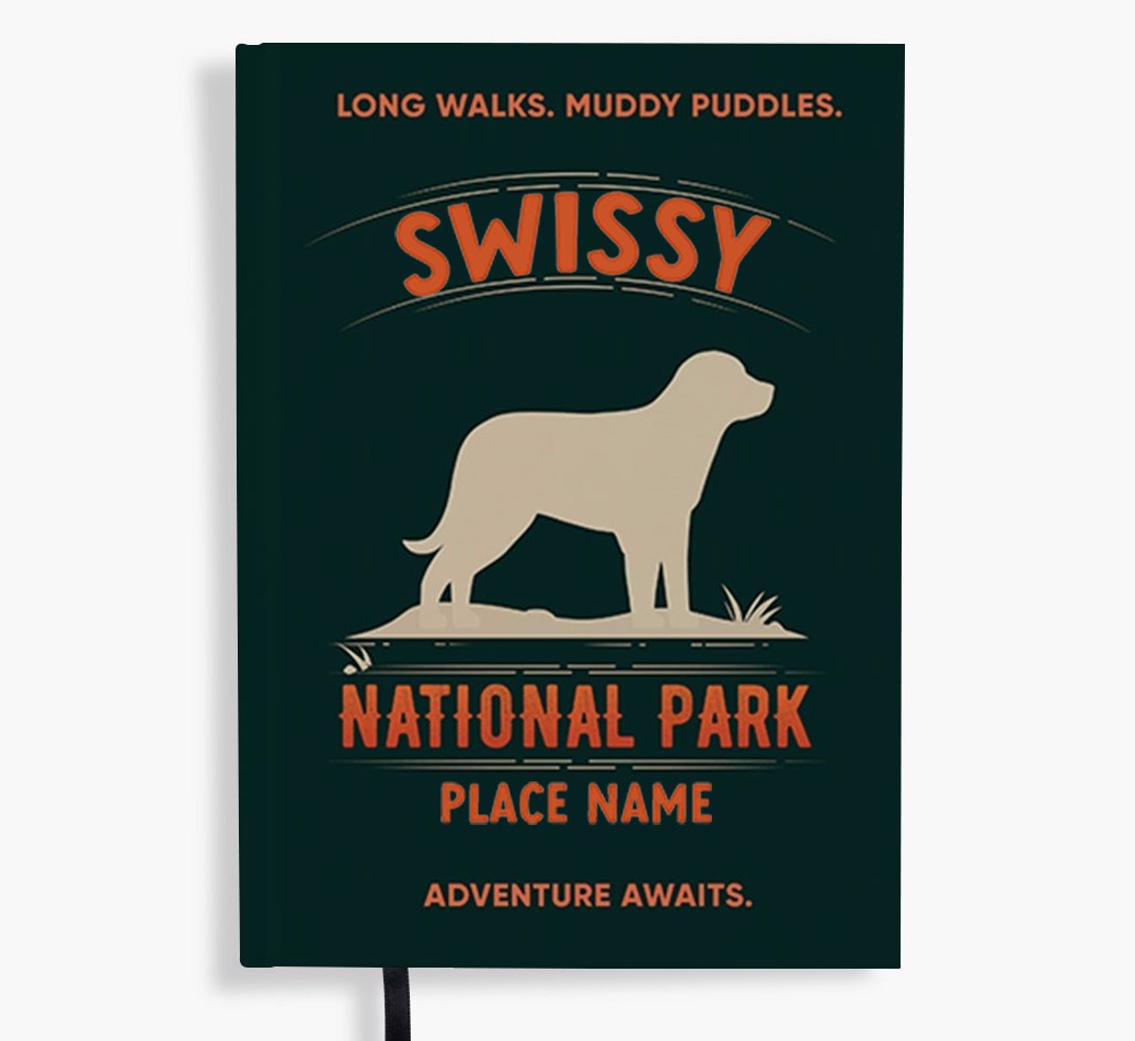 Do you live for long walks with Greater Swiss Mountain Dog? This bold notebook is the perfect place to jot down upcoming adventures with your Swissy, whilst reminding you of your roots with the added place name personalization.