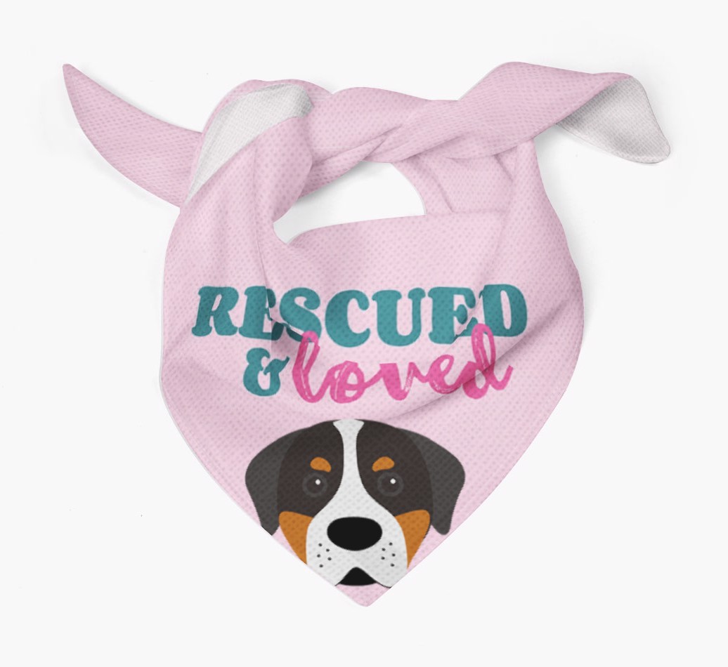'Rescued and Loved' - Personalized Greater Swiss Mountain Dog Bandana