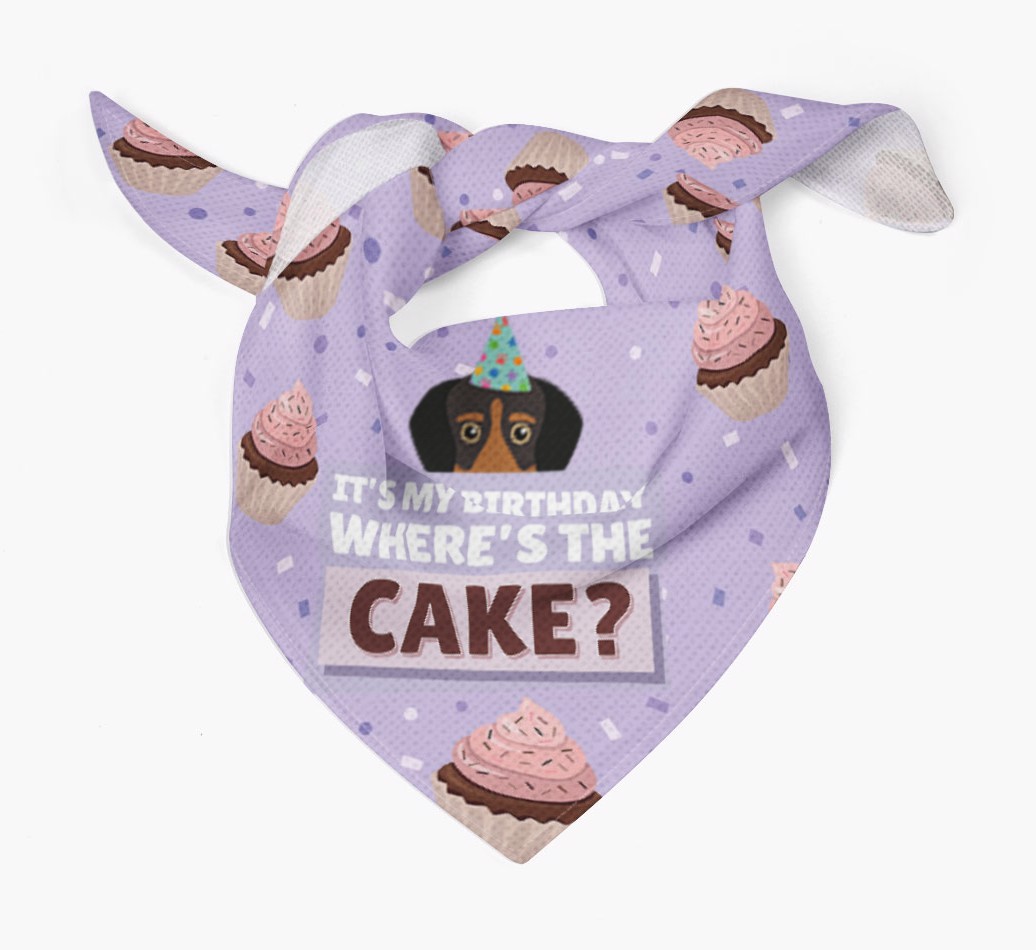'Where's the Cake?' - Personalized Greek Harehound Birthday Bandana