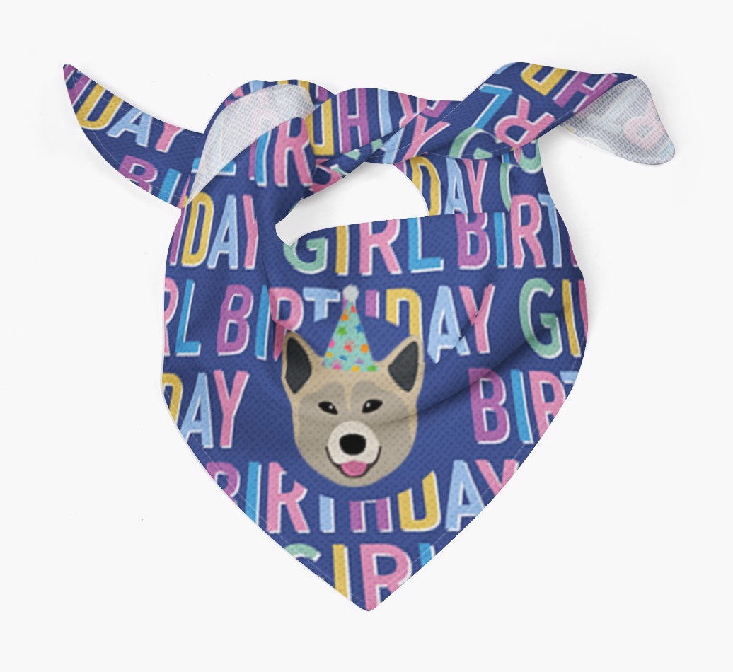 Featuring a text pattern that reads 'birthay girl' and personalized with Greenland Dog's cute icon (complete with a fun party hat), your Greenland Dog will look simply pawgeous on their special day when they're wearing this bandana.