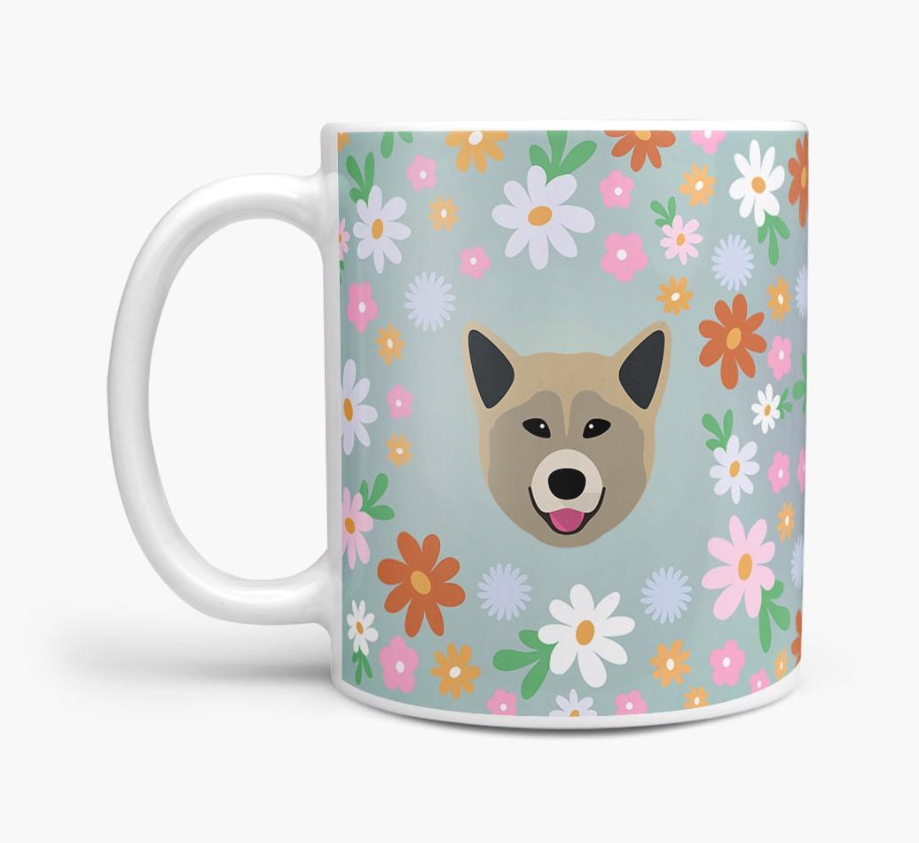 Featuring a colorful bunch of flowers, this mug is printed with the words 'woofly grandma' on one side of the mug and your Greenland Dog's cute icon on the other. Bloomin' lovely!