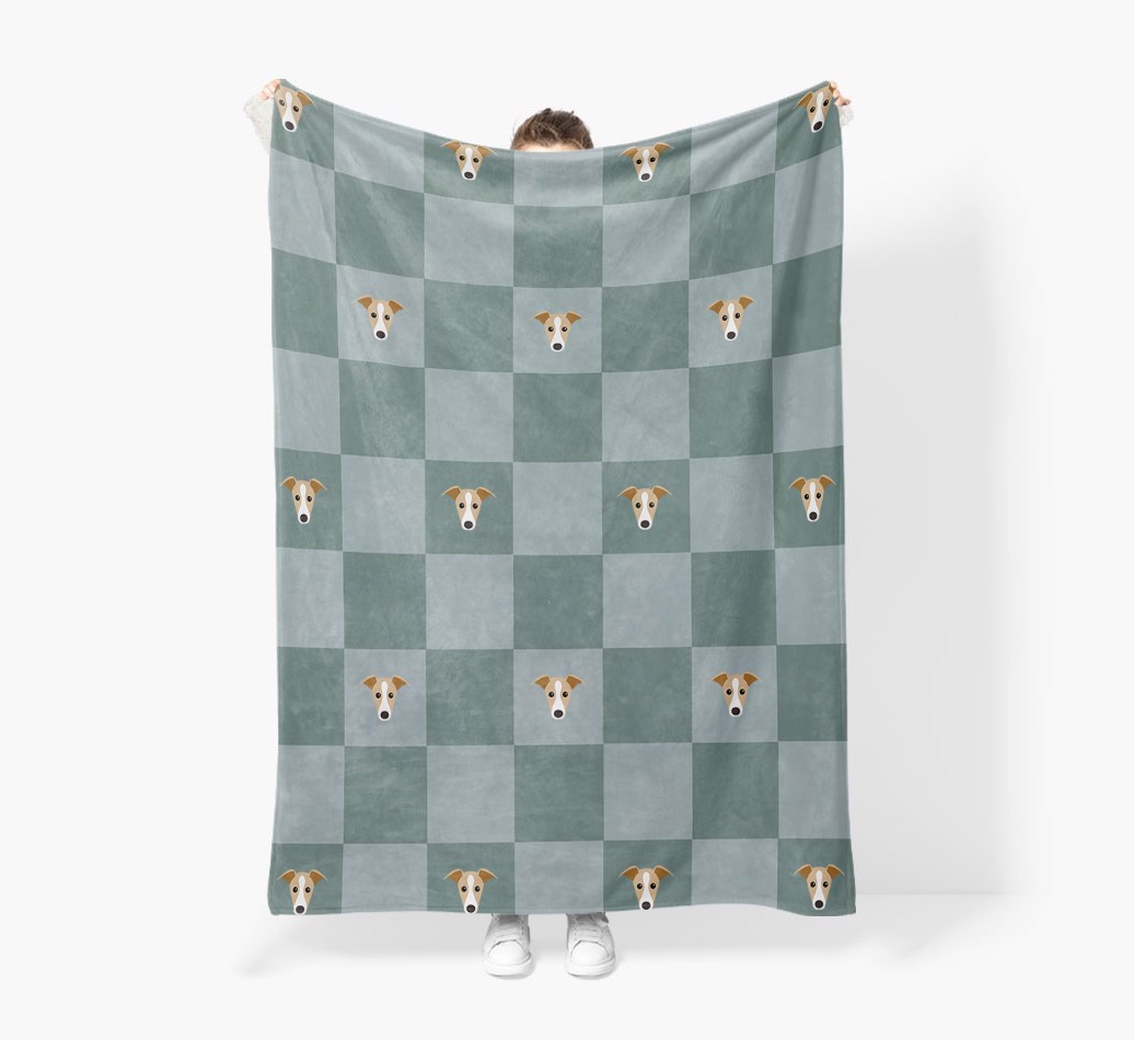 'Checkboard' - Personalized Greyhound Blanket: Premium Sherpa Fleece