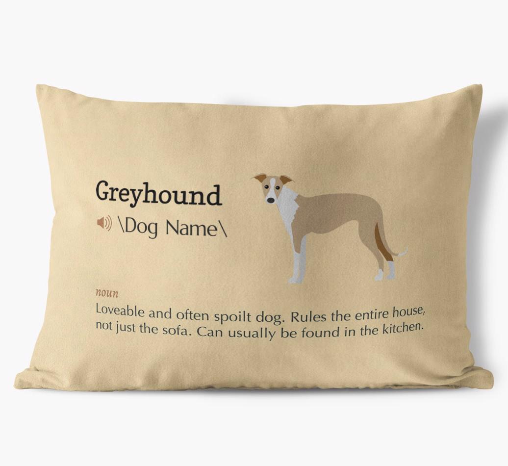 Personalized just for Your Greyhound and featuring a unique Greyhound definition and silhouette, this pillow truly is like no other.