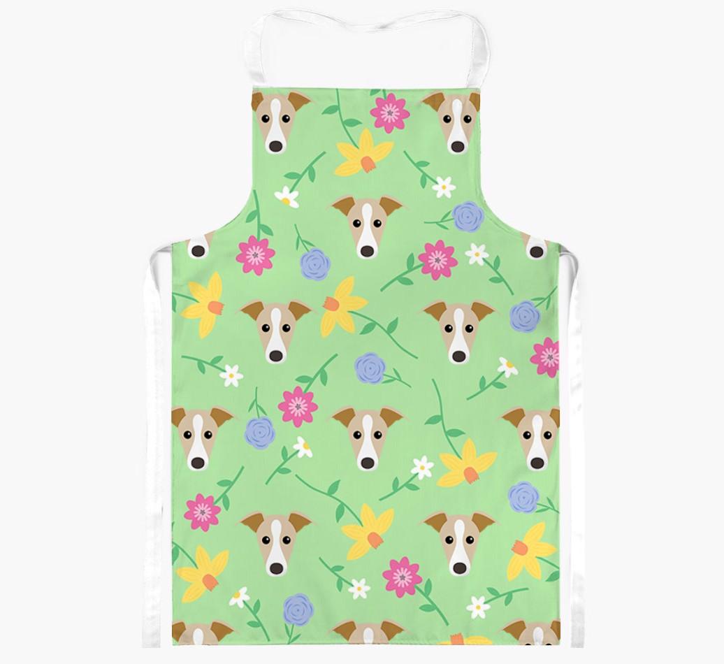 Featuring a gorgeous pattern of flowers and your dog's adorable face, this vibrant apron is bursting with canine charm and flowery fun - perfect for adding a splash of color to your kitchen.