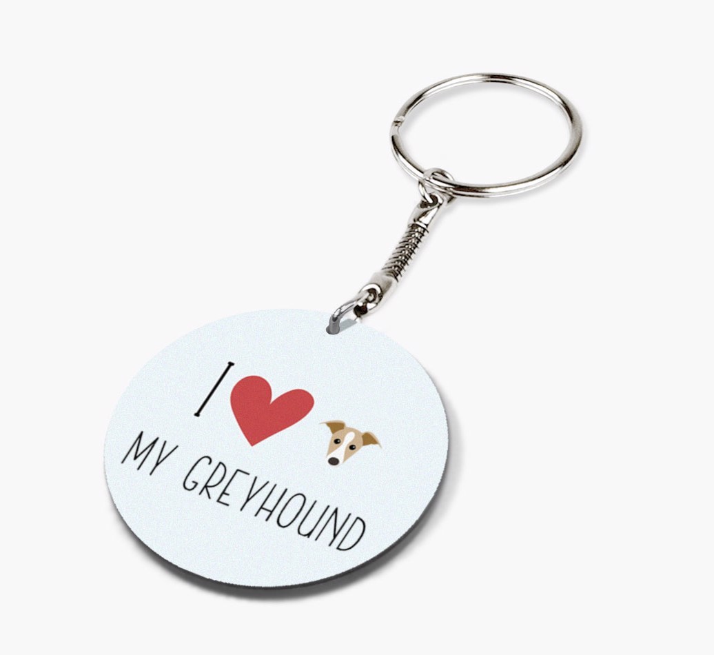 'I Heart My Greyhound' - Personalized Double-sided keychain with Greyhound Icon