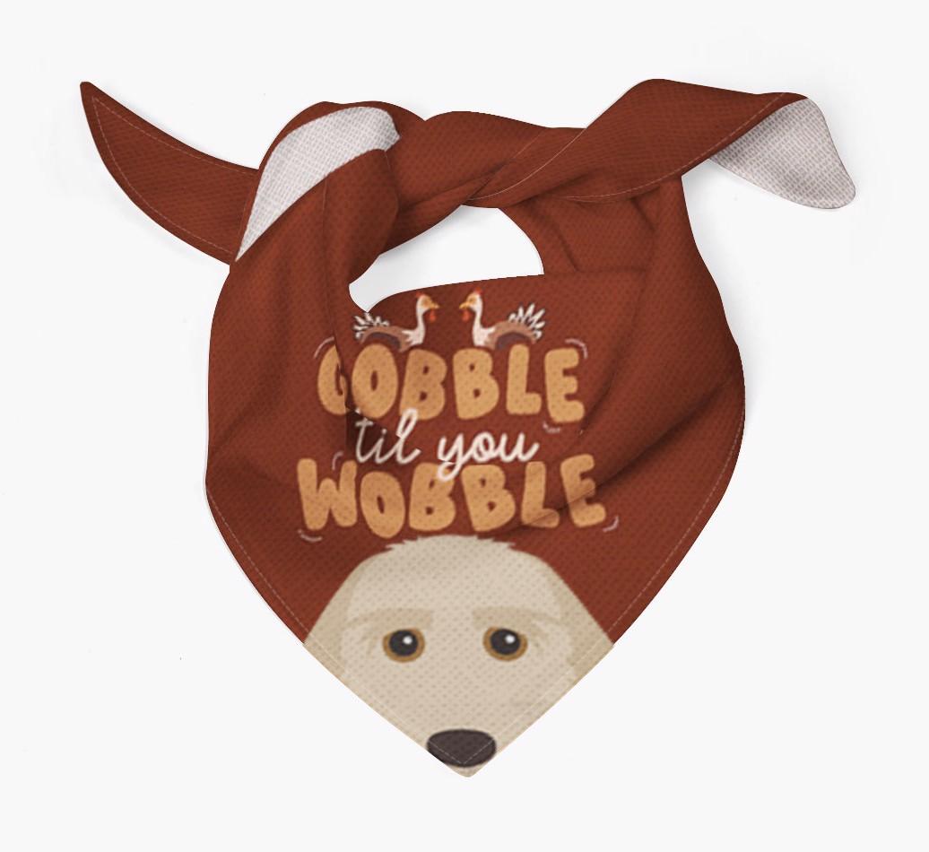 This cute custom bandana is printed with the phrase of the season, "gobble til you wobble"!