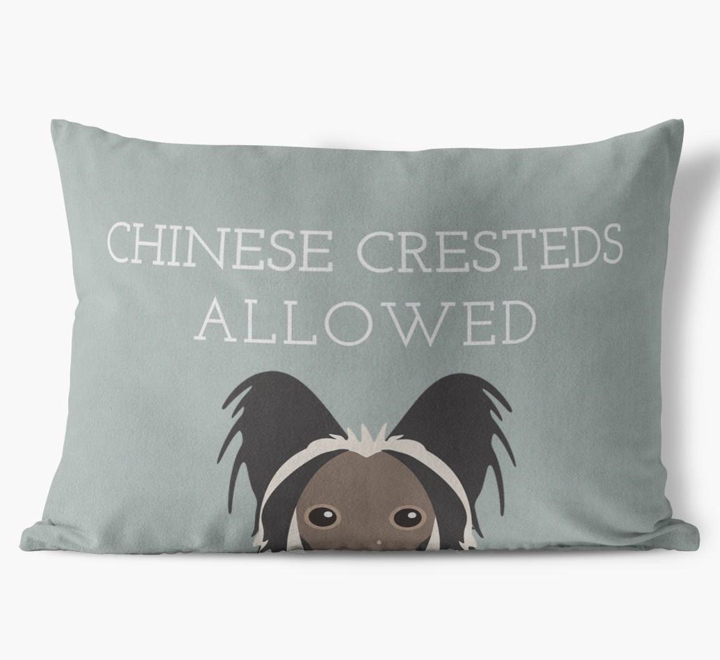 This exclusive, luxurious pillow is printed with the words ‘Chinese Cresteds Allowed’, which I’m sure Your Chinese Crested would definitely approve of.