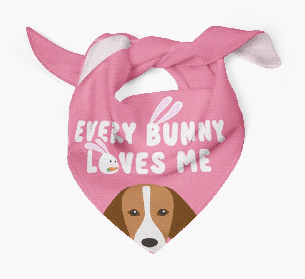 Tailored with the fabulous saying: 'Every Bunny Loves Me', this bandana is the perfect addition to your Hamiltonstovare's wardrobe! Available in four egg-ceptional colors and personalized with your Hamiltonstovare's icon, this is the perfect pawchase for Easter!