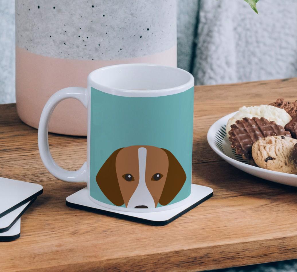 Enjoy the perfect coffee break with a mug that stars your furry friend! Featuring a Yappy.com exclusive Hamilton peeking icon, this pawgeous mug will look at home in any dog lover's kitchen and we're pretty sure Hamiltonstovare will be a fan too.