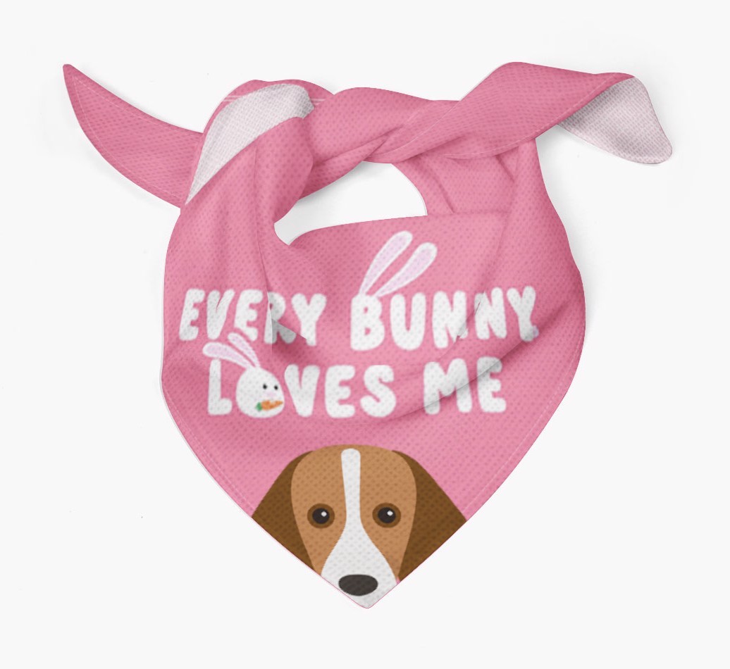 Tailored with the fabulous saying: 'Every Bunny Loves Me', this bandana is the perfect addition to your Harrier's wardrobe! Available in four egg-ceptional colors and personalized with your Harrier's icon, this is the perfect pawchase for Easter!