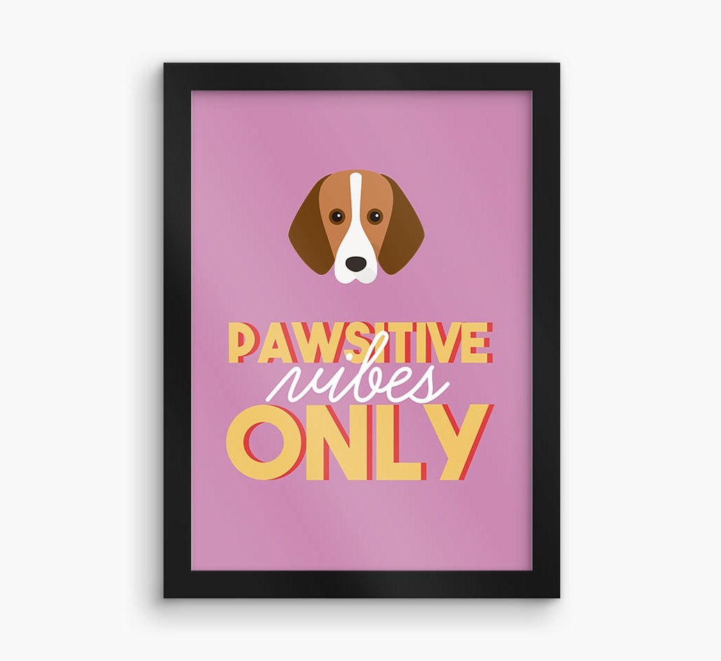 Featuring your Harrier’s yappicon and vibrant text that says 'pawsitive vibes only', this print is pawfect for adding a burst of color and plenty of good vibes into your home (with a helping paw from Harrier).