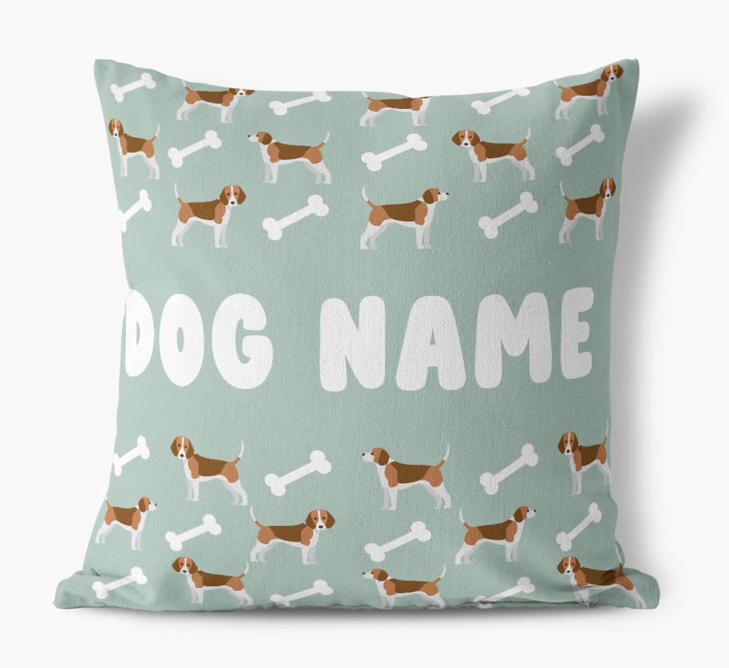 Personalized with Harrier’s name against a background of Harrier icons and bones, this gorgeous pillow is full of pawsonality.
