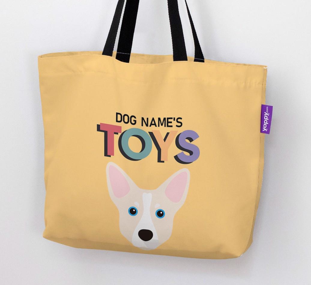 Don’t worry, we’ve got you covered with this pawsonalized canvas bag made for your Horgi’s toy collection!