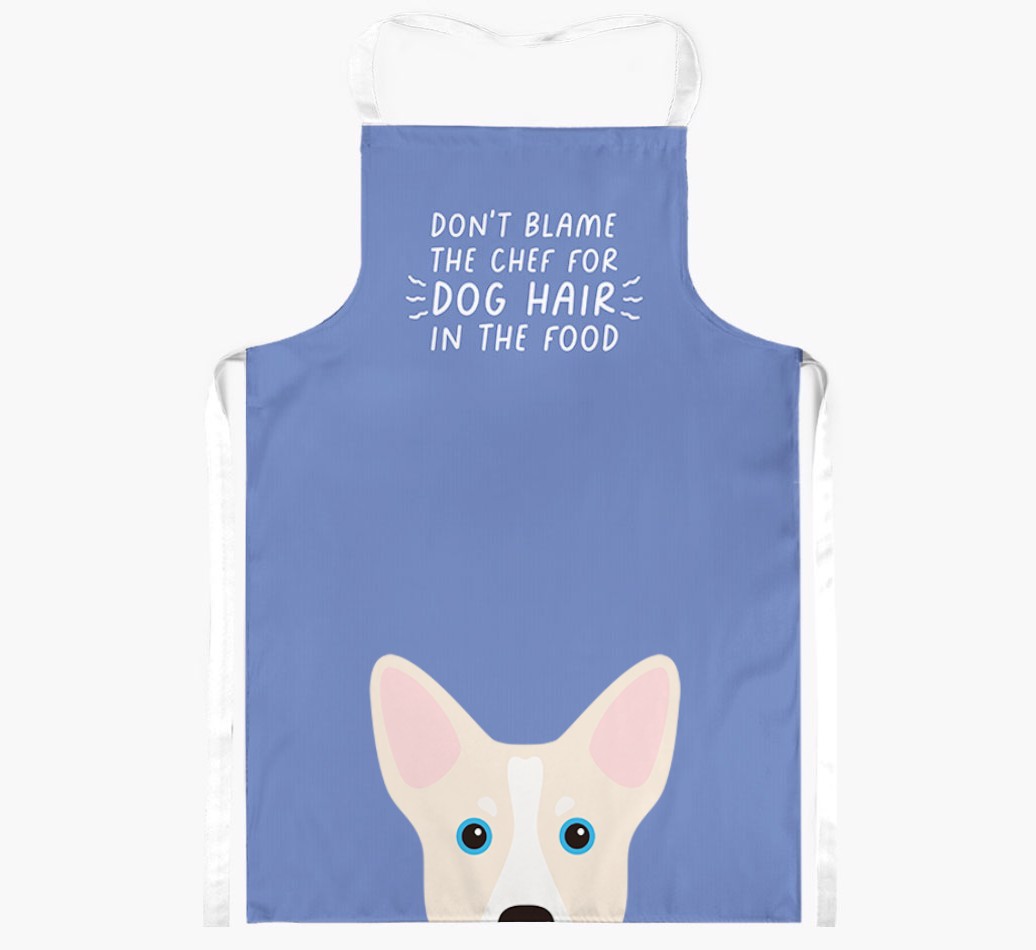 This funny apron will warn friends and family not to blame the chef for dog hairs in their food, they have Horgi to thank for that!