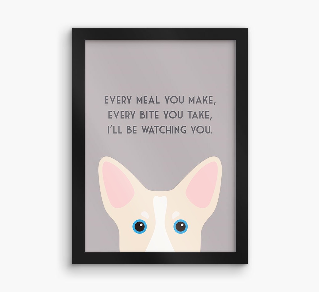 Printed with the words, ‘Every meal you make, every bite you take, I’ll be watching you’ and complete with our cute Horgi peeking from the bottom of the design, this artwork will look great on display in the kitchen or anywhere Horgi likes to watch you eat!