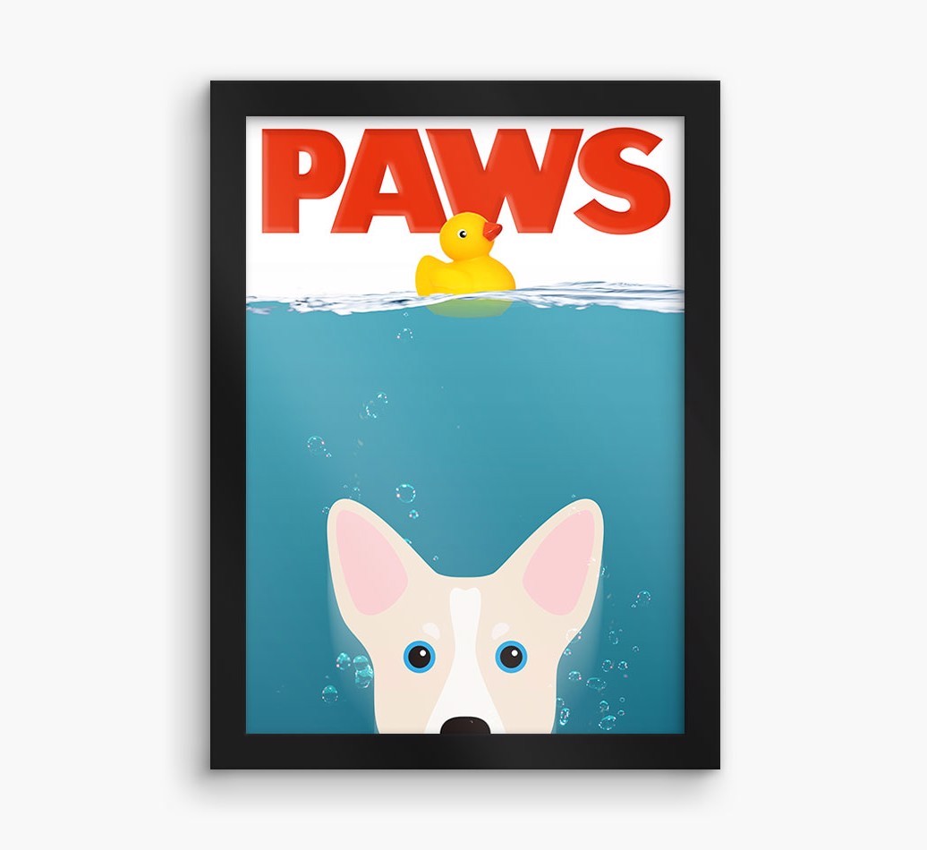 Featuring Horgi as the lead in the barkbuster film ‘Paws’, this vibrant art piece is a cool way to show off your superstar Horgi.