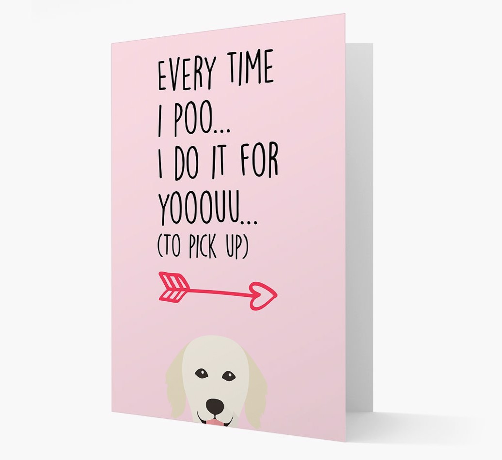 Printed with the words ‘Everytime I poo… I do it for youuuuu (to pick up)’, this lyrical card is personalized with our famous Kuvasz icon – so it’s clear who’s been leaving you all those delightful ‘gifts’ to pick up!