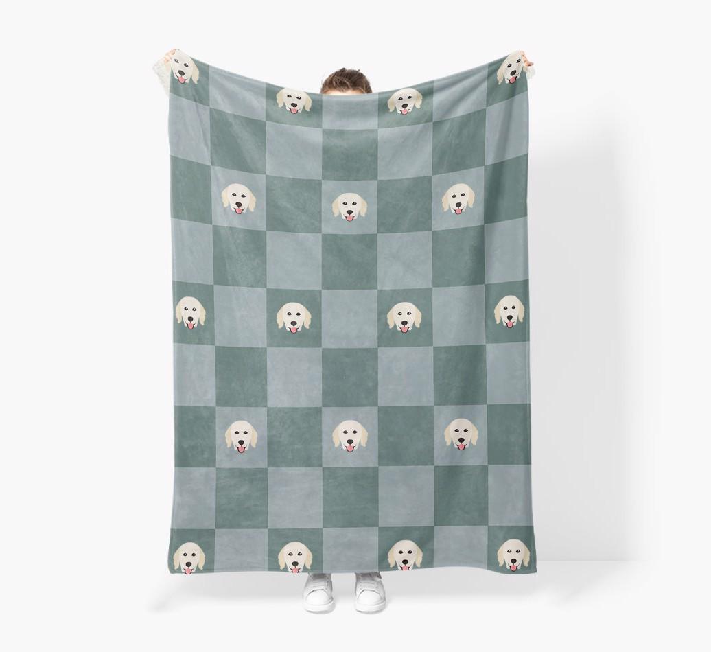 'Checkboard' - Personalized Hungarian Kuvasz Blanket: Premium Sherpa Fleece