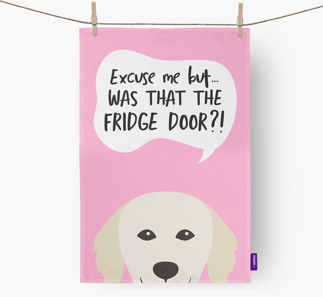 'Was That The Fridge Door?!' - Personalized Hungarian Kuvasz Dish Towel