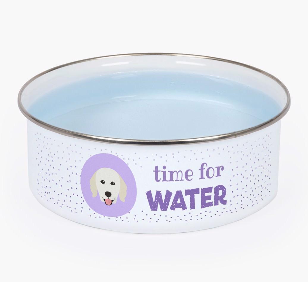 Time For Water: Personalized Enamel Hungarian Kuvasz Bowl