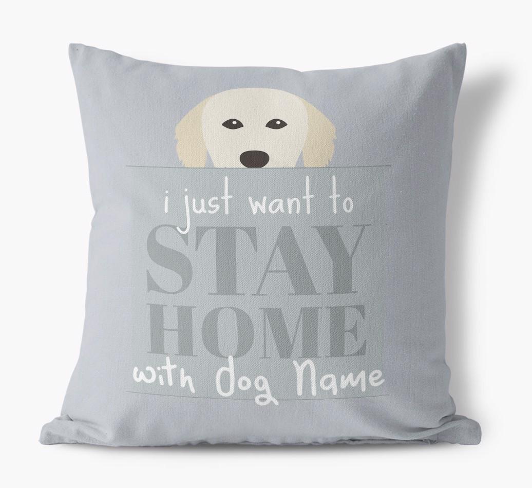 Stay Home: Personalized Hungarian Kuvasz Canvas Pillow