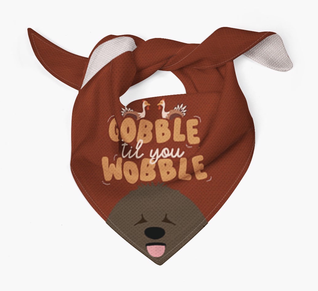 This cute custom bandana is printed with the phrase of the season, "gobble til you wobble"!
