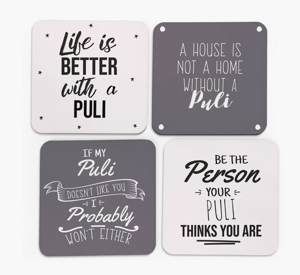 'Puli Quote' - Personalized Hungarian Puli Coasters (Set of 4)