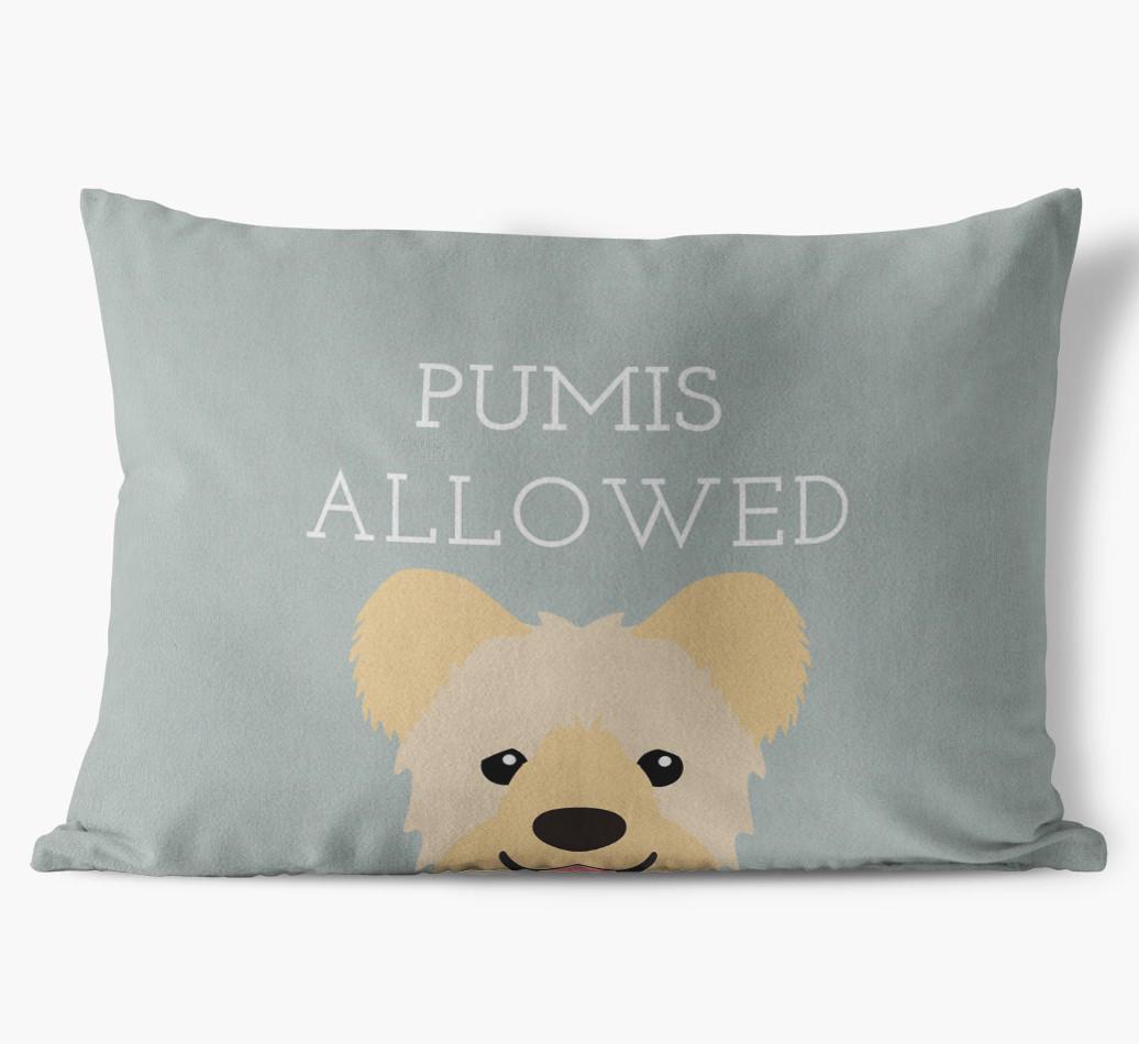 This exclusive, luxurious pillow is printed with the words ‘Pumis Allowed’, which I’m sure Your Pumi would definitely approve of.