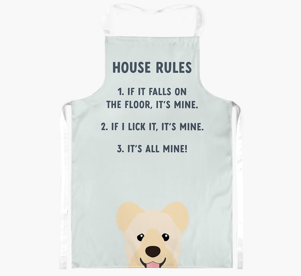 A fun way to show off your greedy pup, this stylish apron is personalized with your furry friend's icon and features their rules when it comes to food.