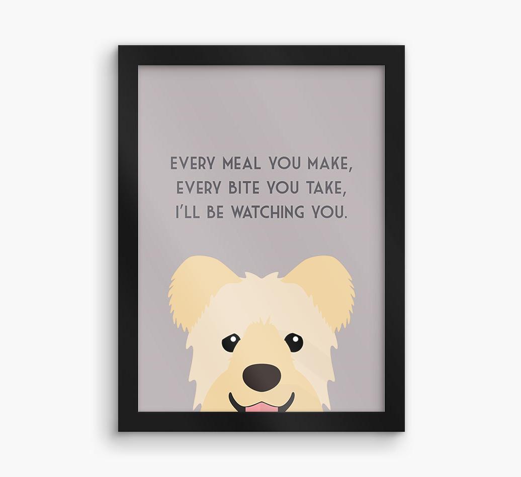 Printed with the words, ‘Every meal you make, every bite you take, I’ll be watching you’ and complete with our cute Pumi peeking from the bottom of the design, this artwork will look great on display in the kitchen or anywhere Hungarian Pumi likes to watch you eat!