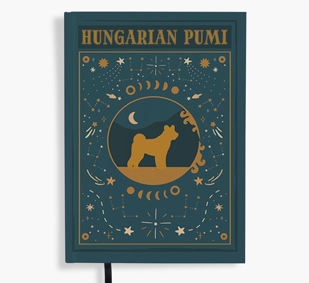 Featuring a seriously stylish tarot design, this notebook enters a new phase of cuteness with the added personalization of Hungarian Pumi’s silhouette and their breed name on the cover.