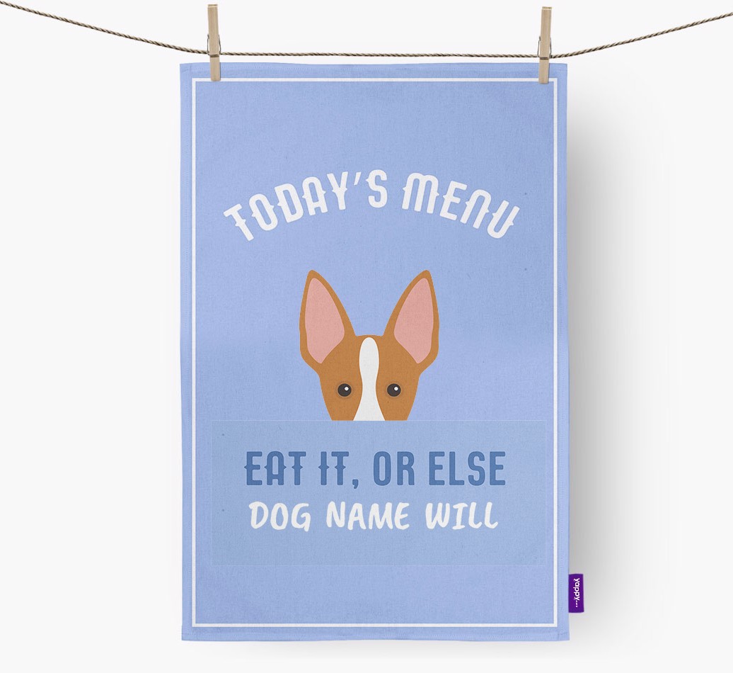 'Eat It, Or Else...' - Personalized Ibizan Hound Dish Towel