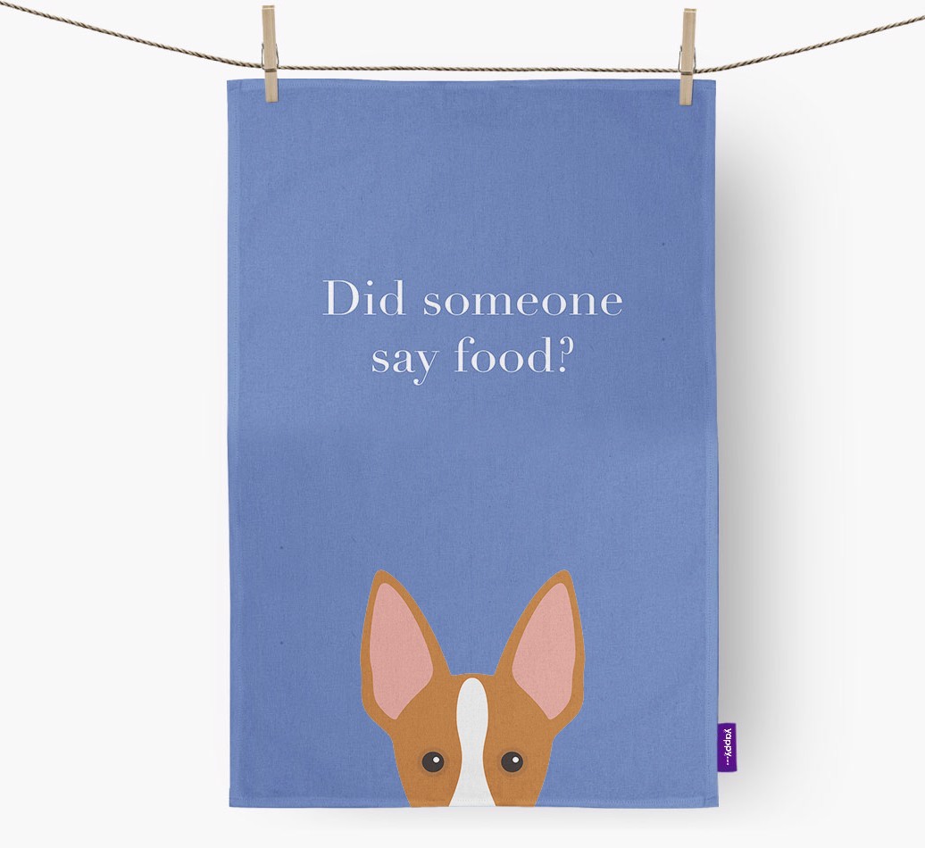 Printed with the question, ‘Did someone say food?’, this dish towel knows exactly what’s on Your Ibizan Hound’s mind.