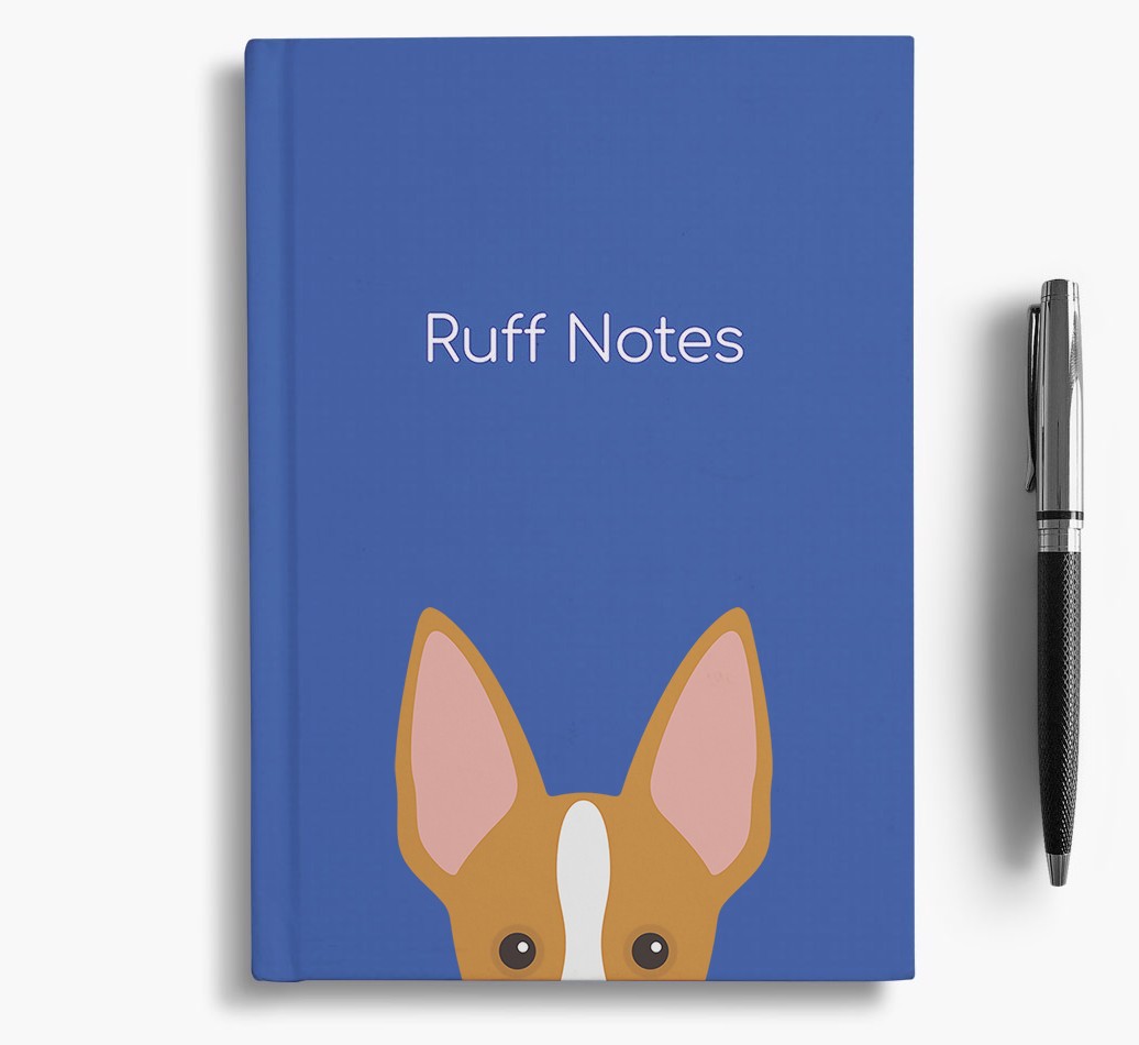 The front cover features our exclusive Ibizan Hound peeking icon and is printed with the words, ‘Ruff Notes’, whilst the back is printed with the words ‘Live. Laugh. Woof.’.