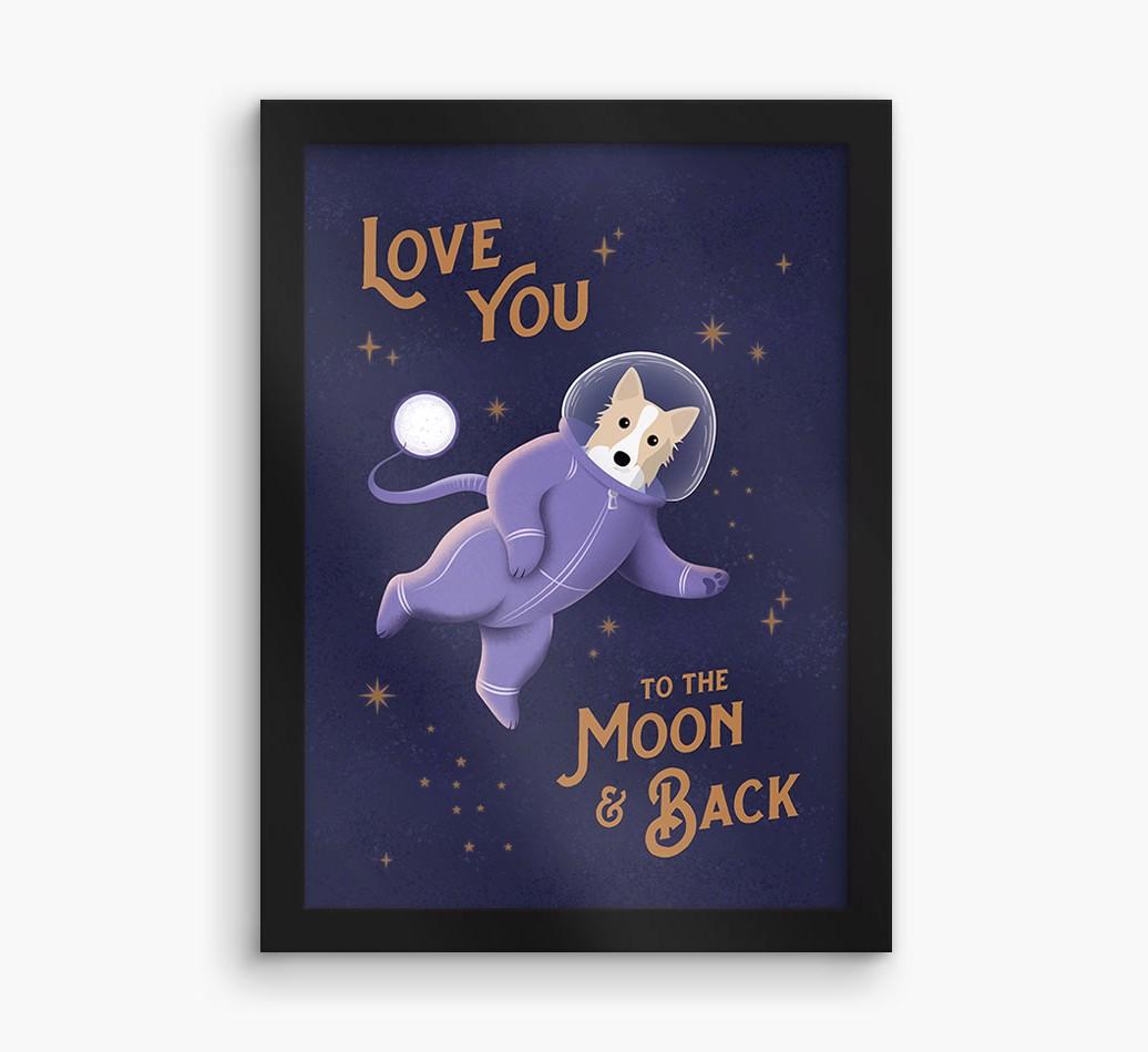 Starring your adventurous Icelandic Spitz dressed as an astronaut and printed with the words, 'love you to the moon & back', this artwork is a fun and unique way to put your four-legged friend on display and add canine charm to your home.
