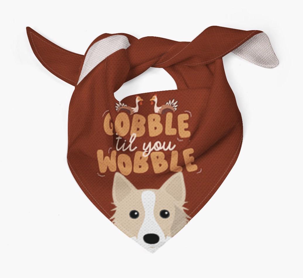 This cute custom bandana is printed with the phrase of the season, "gobble til you wobble"!