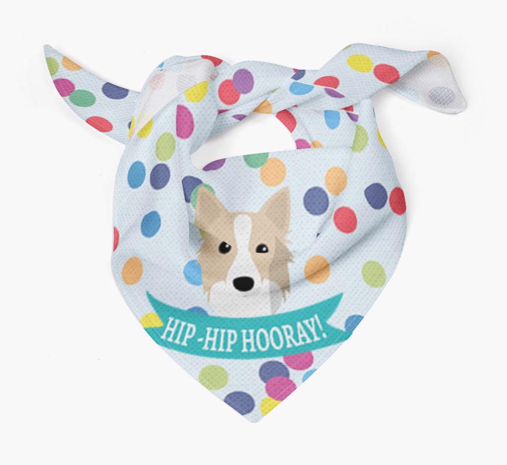 Featuring our famous Icelandic Spitz icon and the words ‘hip-hip hooray!’ printed upon a colorful confetti background, Your Icelandic Sheepdog is sure to look pawty ready wearing this bandana.