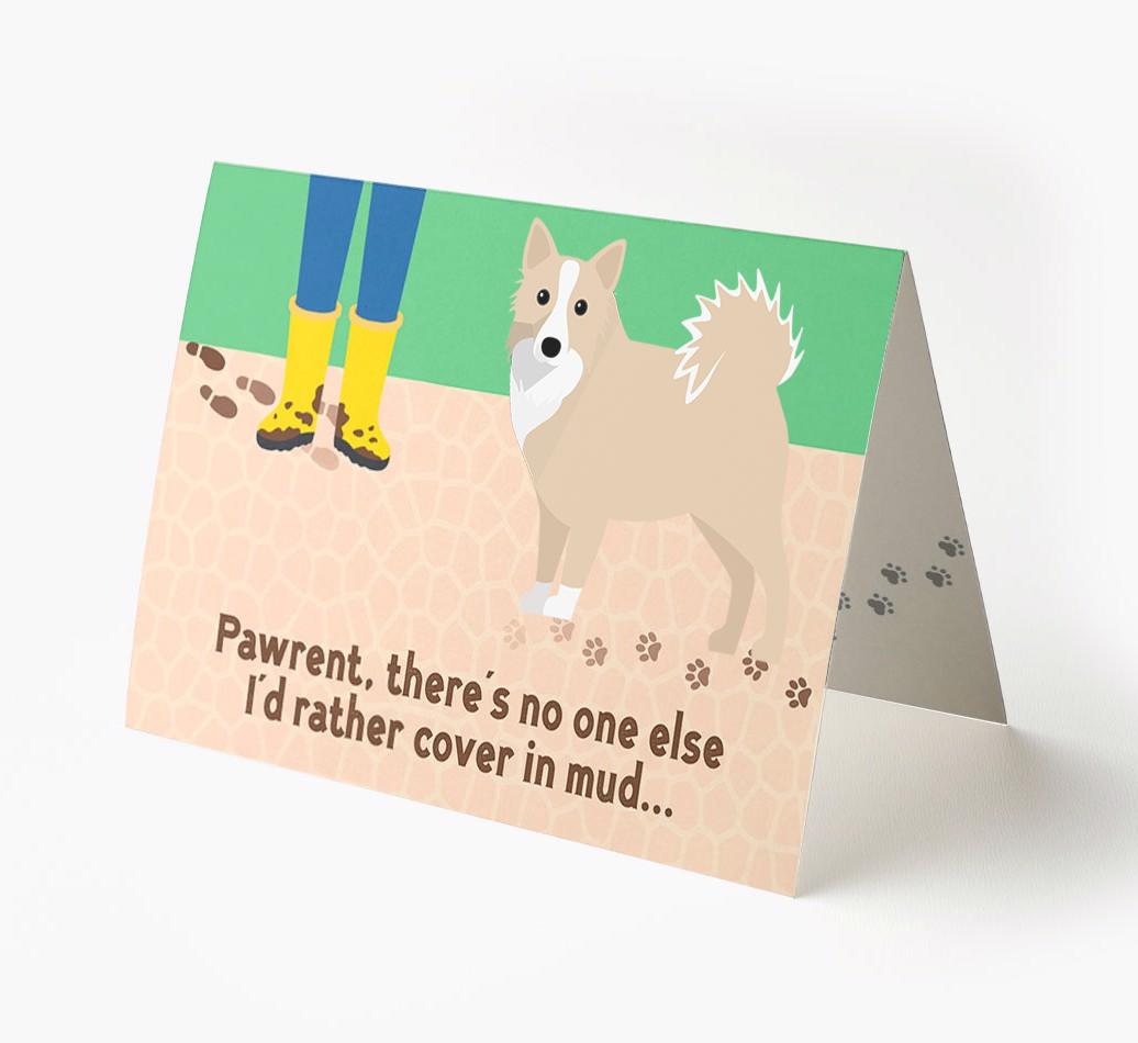 This comical card is sure to delight Icelandic Sheepdog's pawrent (without getting muddy), especially as it stars their Icelandic Spitz's cheeky icon.