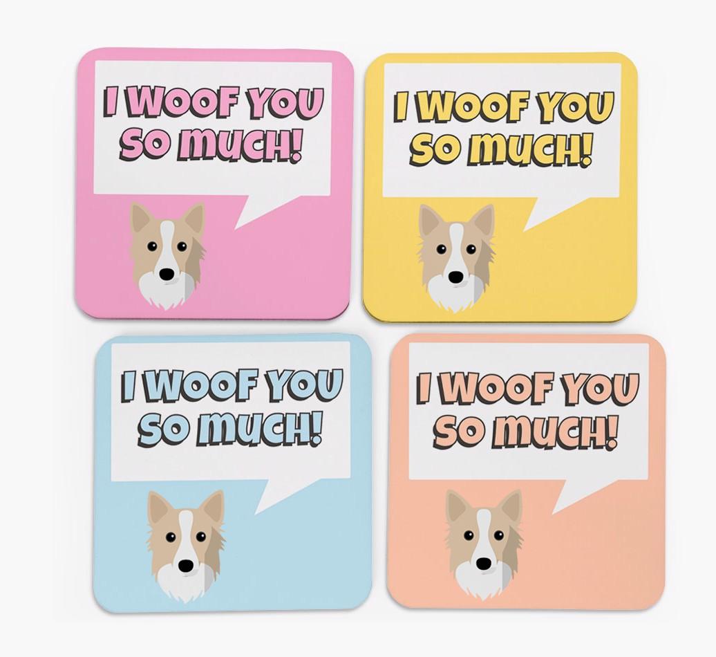 'I Woof You So Much' - Personalized Icelandic Sheepdog Coasters (Set of 4)
