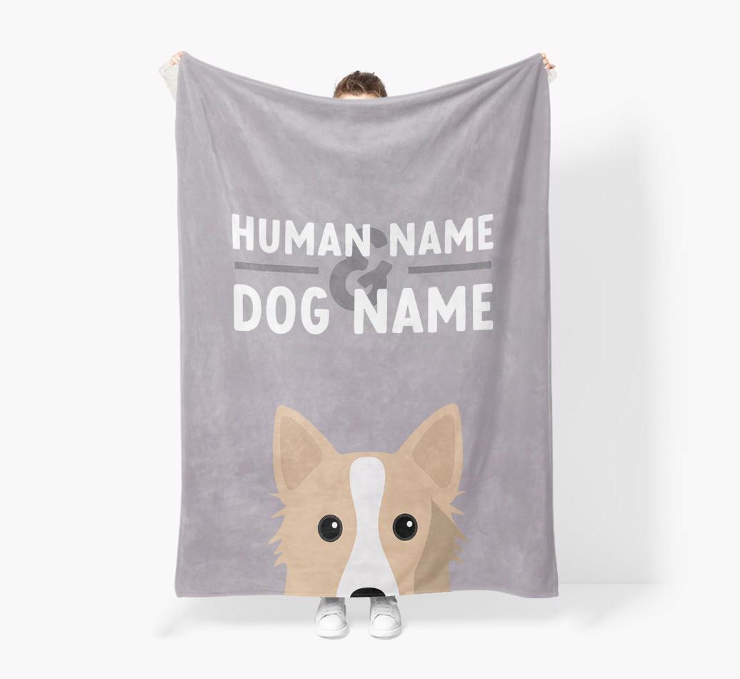 Human & Dog Name: Personalized Icelandic Sheepdog Premium Sherpa Fleece Blanket