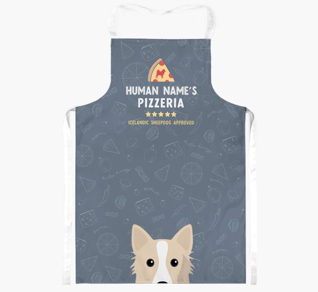 Featuring your furry friend's icon and lick of approval, plus your chosen human name, this apron is pawfect for anyone who considers themselves a pizza maestro in the kitchen. Available in a choice of 5 rustic colors, it'll make any Icelandic Spitz lover happy.