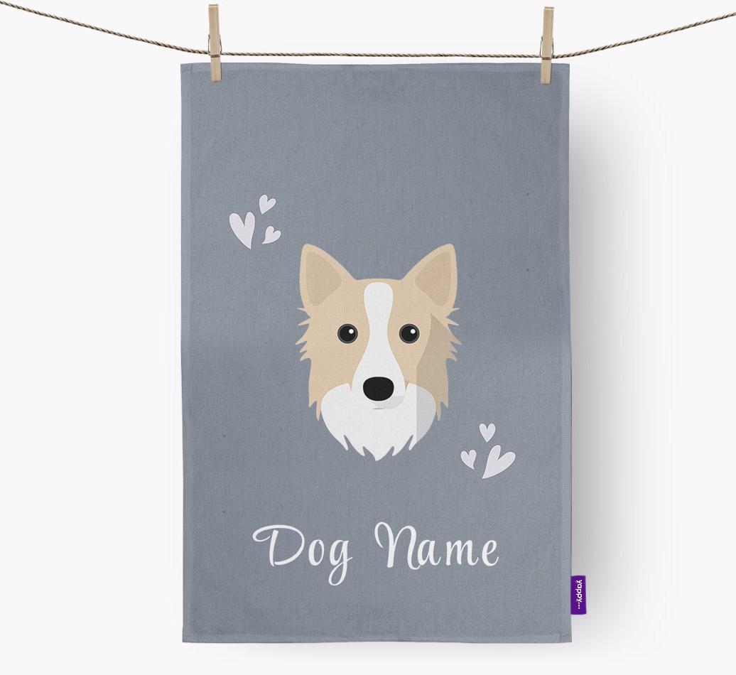 'Hearts' - Personalized Icelandic Sheepdog Dish Towel