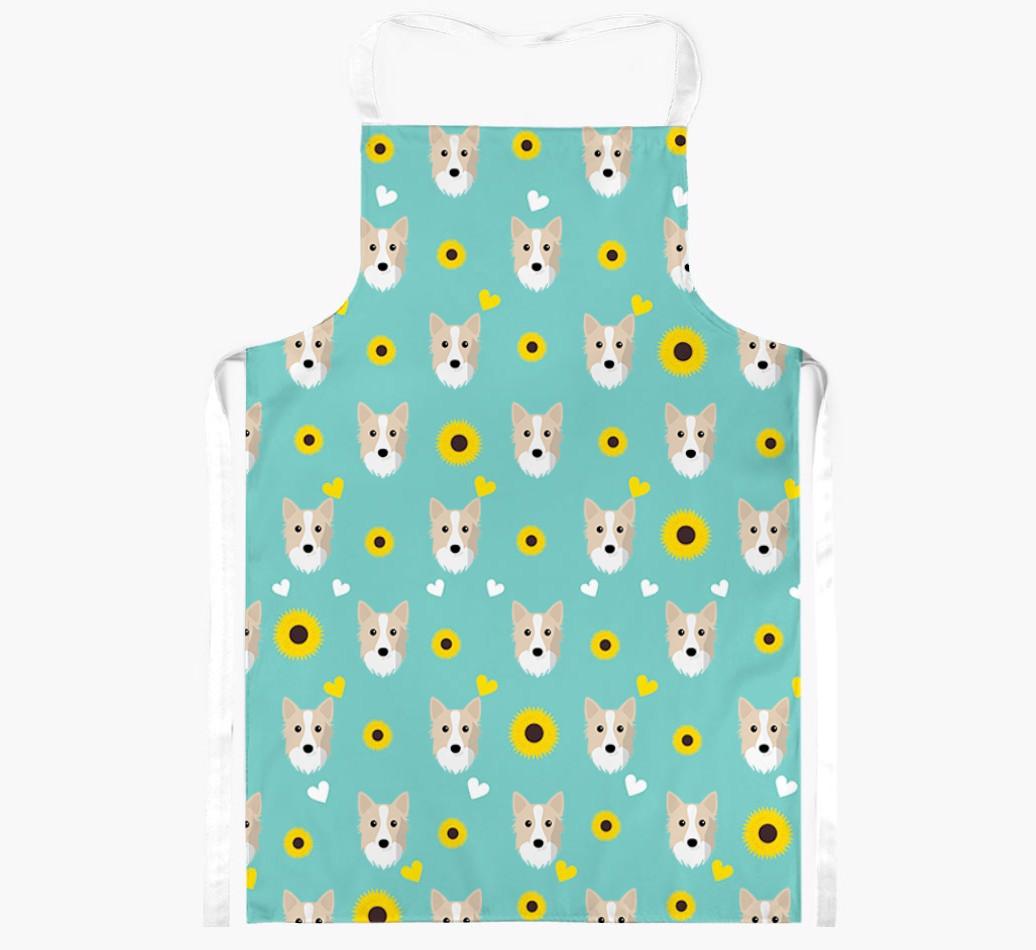 This apron has a delightful sunflower and heart pattern, and best of all - it's personalized with Icelandic Sheepdog's face too! This cute and colorful apron is sure to put a smile on every dog lover's face.