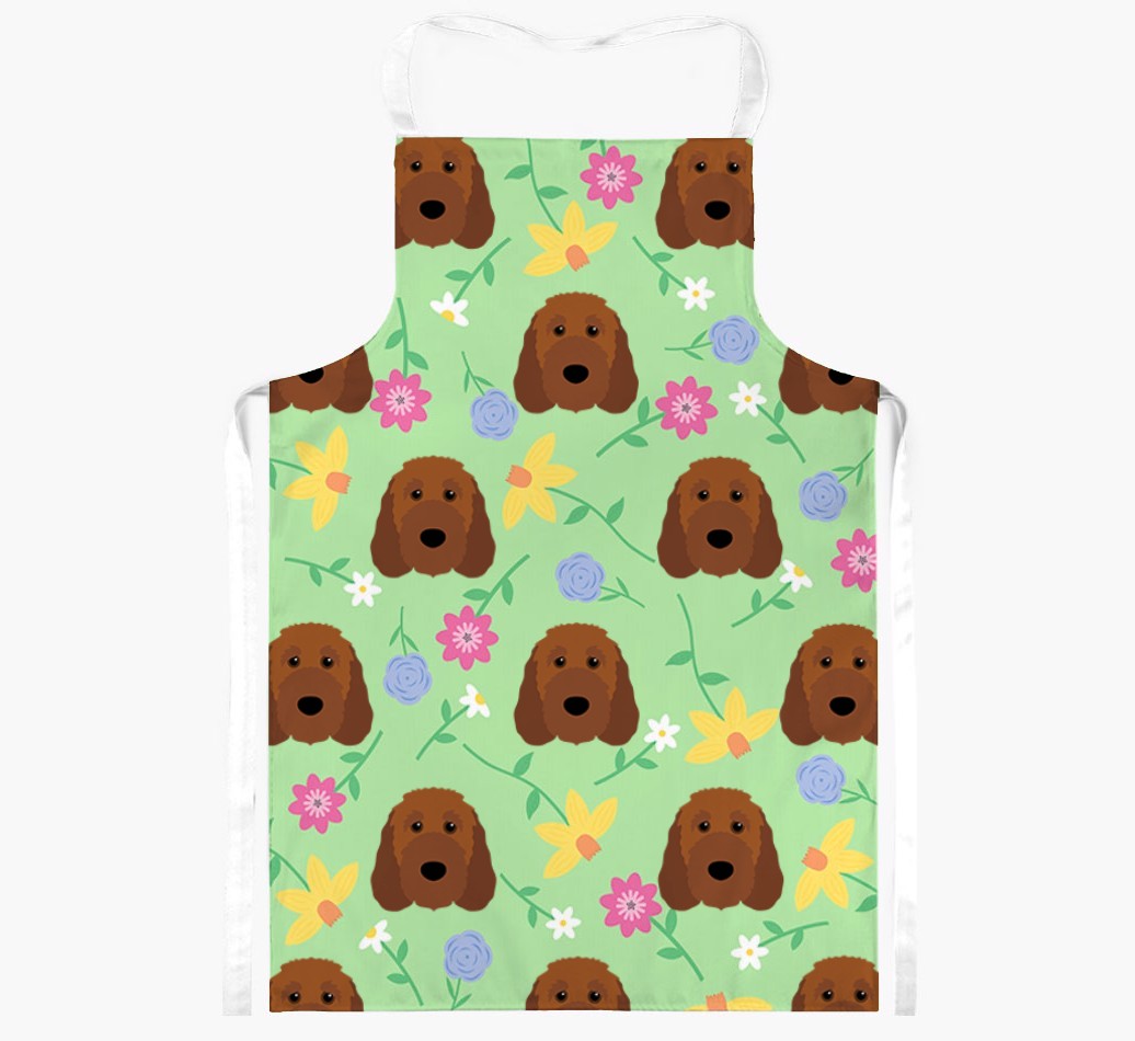 Featuring a gorgeous pattern of flowers and your dog's adorable face, this vibrant apron is bursting with canine charm and flowery fun - perfect for adding a splash of color to your kitchen.
