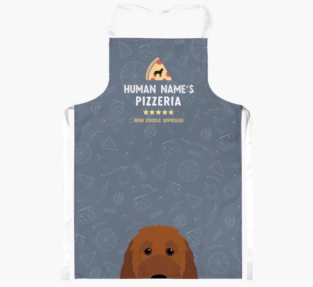 Featuring your furry friend's icon and lick of approval, plus your chosen human name, this apron is pawfect for anyone who considers themselves a pizza maestro in the kitchen. Available in a choice of 5 rustic colors, it'll make any Irish Doodle lover happy.