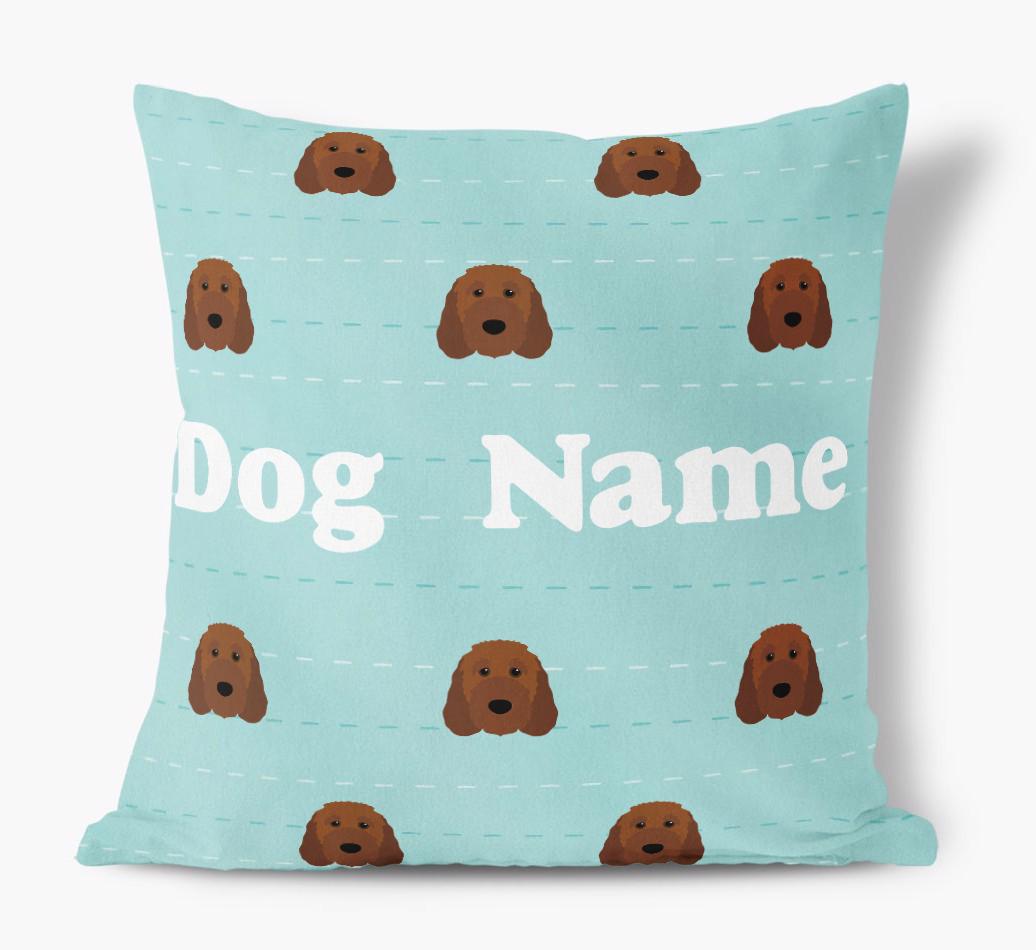 Featuring a furbulous Irish Doodle icon pattern, this pillow is available in six chic color-ways and is personalized with Your Irish Doodle's name.