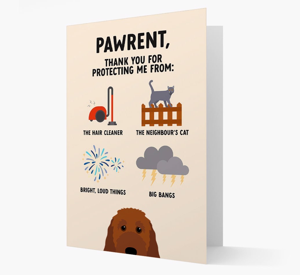 This pawsome card is the ultimate way to let Your Irish Doodle's owner know that their Irish Doodle is fur-tunate to have them as a pawrent!